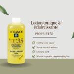 La lotion tonique T35 des laboratoires français ROSANCE parfait le nettoyage de votre peau et tonifie votre épiderme tout en vous procurant une agréable sensation de fraîcheur. Elle aide également à unifier et éclaircir le teint grâce aux propriétés exfoliantes des Alpha-Hydroxy-Acides. Sa formule enrichie en extrait de Ginseng permet de stimuler la production de collagène, une protéine qui soutient la peau et assure sa densité. Ainsi, la peau retrouve sa fermeté et sa souplesse. De plus, le ginseng agit également sur les kératinocytes (les cellules de la peau) en favorisant le renouvellement cellulaire ce qui, de fait, illumine votre teint. Vous l’aurez donc compris, le ginseng est un actif anti-âge naturel par excellence qui agit sur plusieurs signes de l’âge.